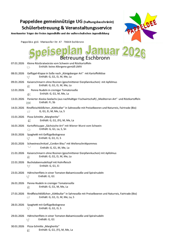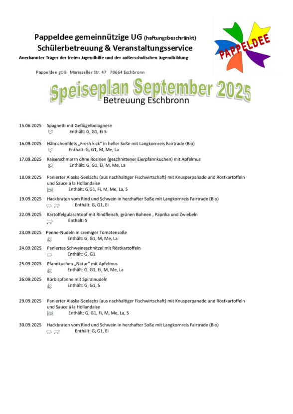 In unserer Betreuungseinrichtung in Eschbronn bieten wir auch warmes Mittagessen an. Dieses bekommen wir tiefgekühlt von der Firma Apetito aus Rheine geliefert. Die Speisen, die wir anbieten sind abwechslungsreiche Vollwertmenüs. Sie können die Speisepläne bei Bedarf auch herunterladen.